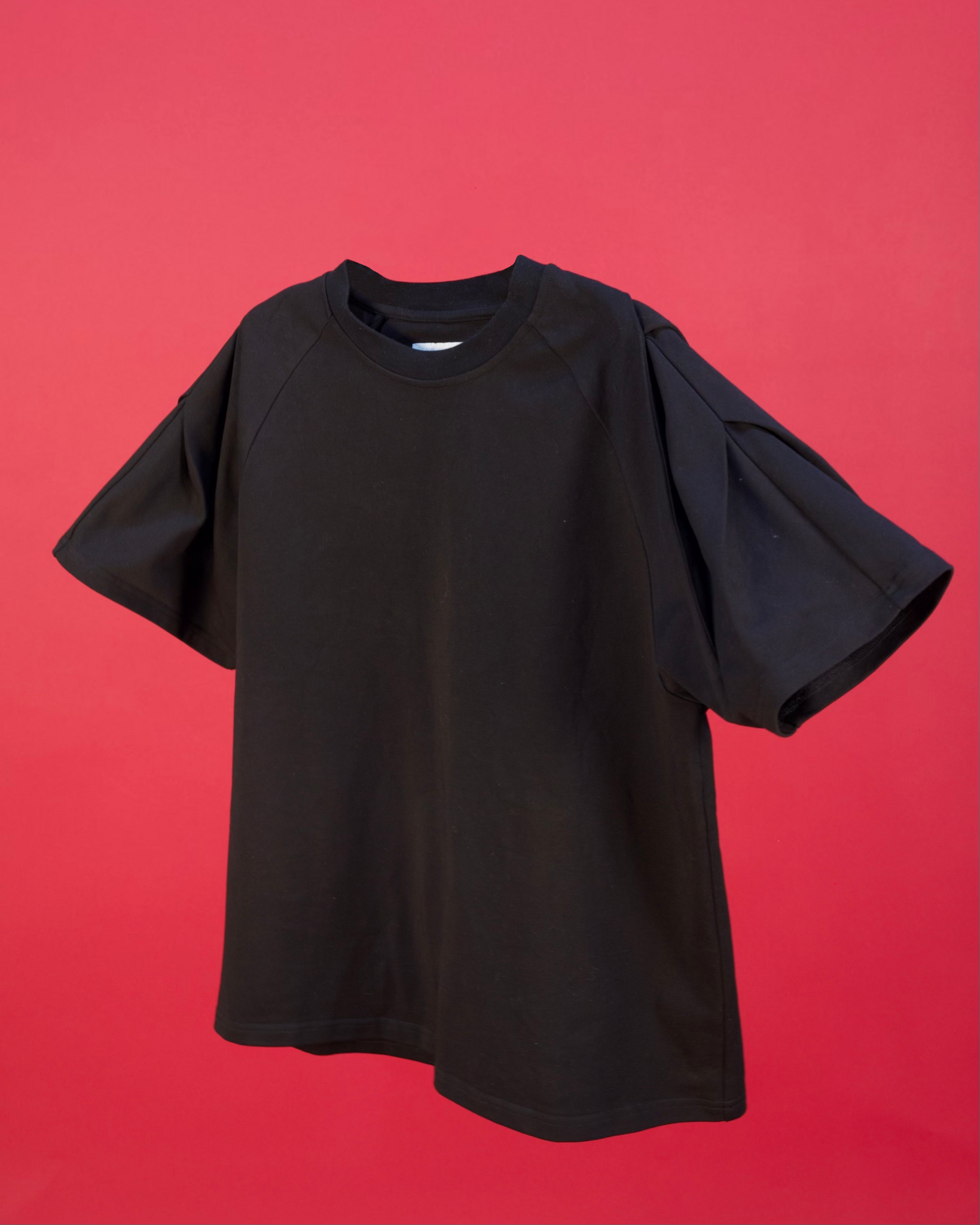 Made from a 10 oz cotton featuring pleats on the side of sleeves that resemble a leaf.